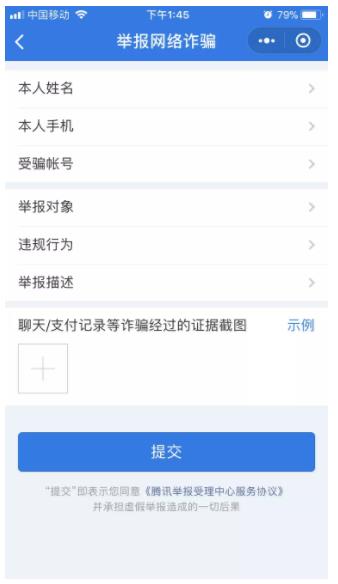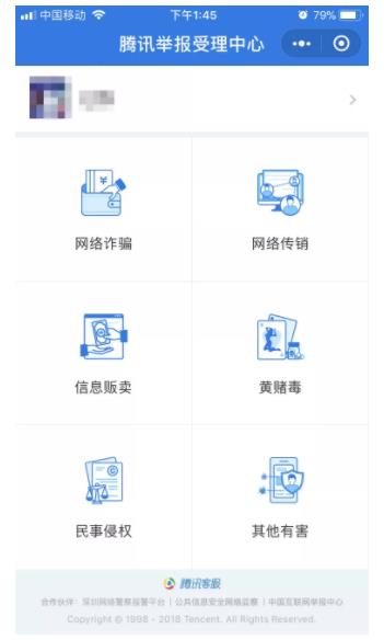 搜索腾讯举报受理中心——选择对应举报事项!