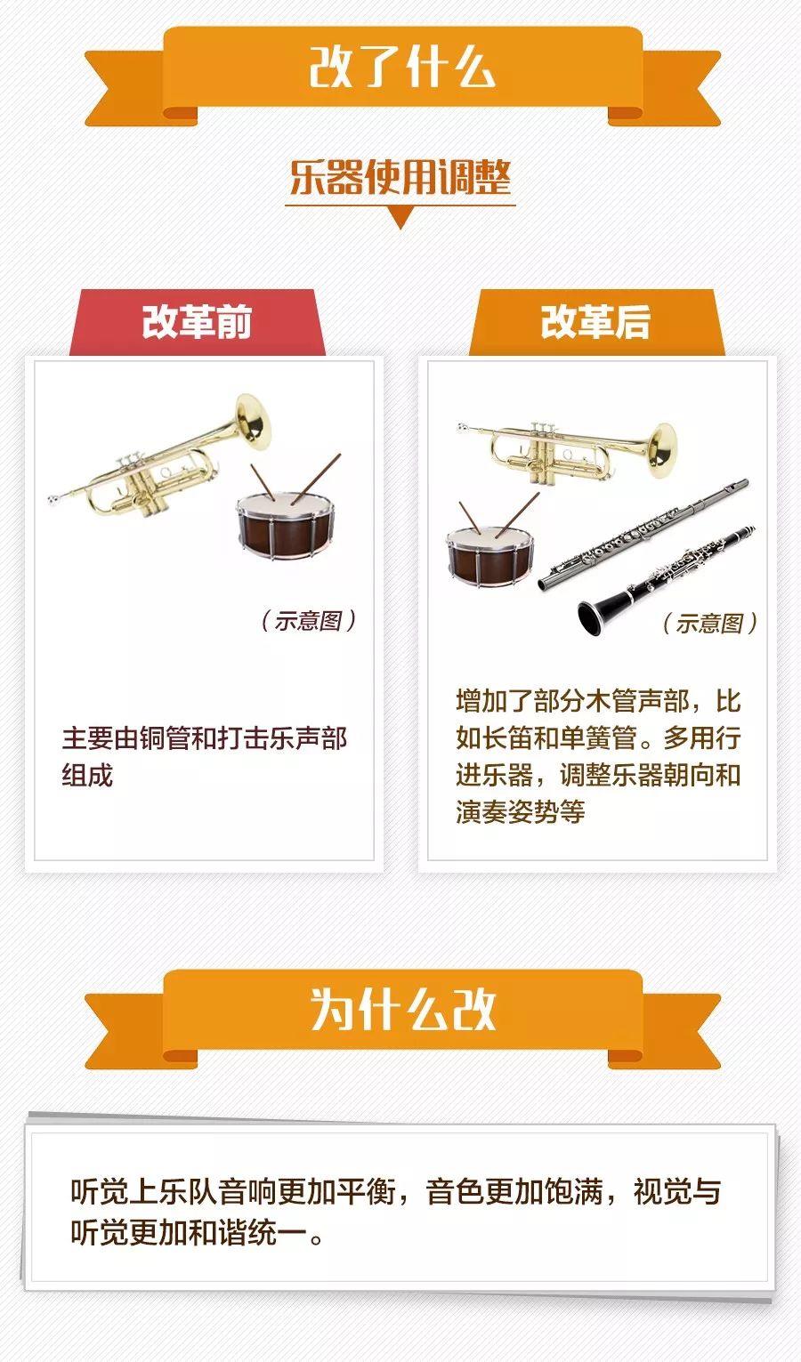 四年之前,军乐团队列行进吹奏表演首次出现在了习主席欢迎外国元首的仪式上。这次改革又做了多处重大调整。