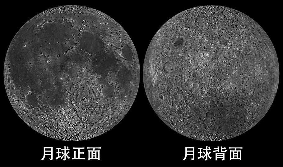 月球背面看起来也是一片荒凉,但地貌与正面存在相当大的差异。在月球正面,主要的地貌是由黑色玄武岩组成的广阔月球,覆盖比例可达三分之一。而在月球背面,月海很少,覆盖比例仅为四十分之一。