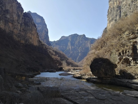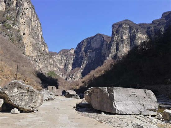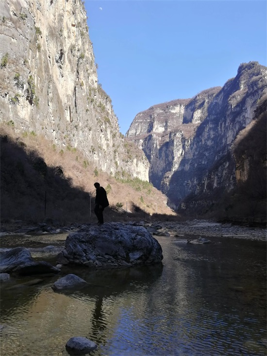 3月23日,风和日暖,丽日蓝天,是春日里难得的明媚日子,我走进峡谷,行走了大约10千米,被这种壮观的嶂谷地貌所震撼!