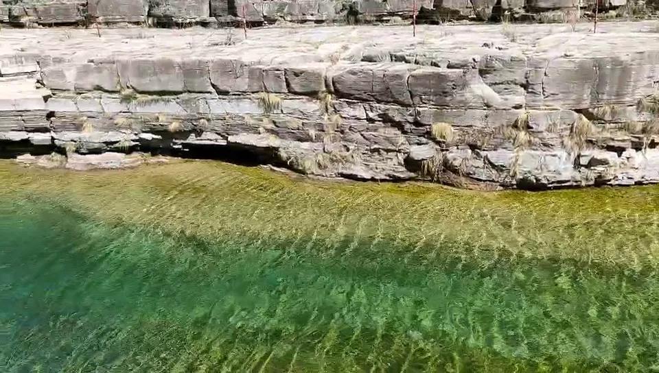 清澈的流水漫过黄色的钙化河床,像极了四川黄龙风光。