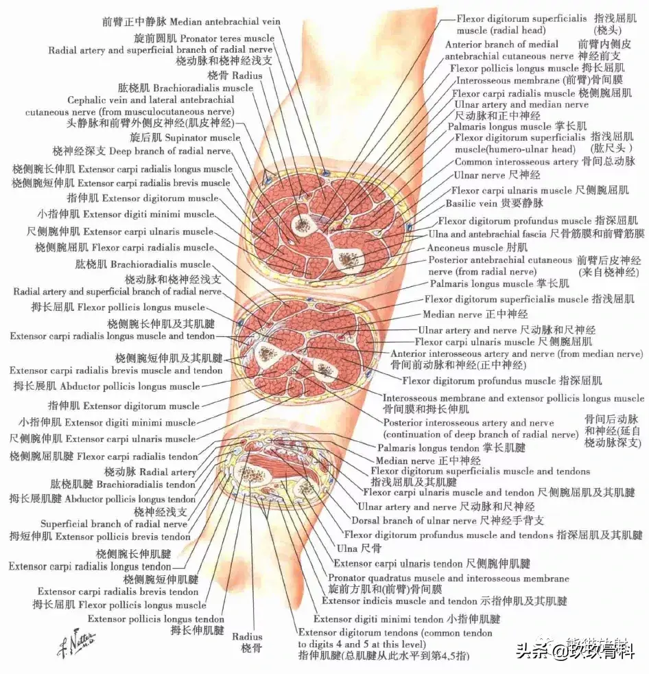 超清晰的上肢(肘和前臂、腕和手)解剖图,赶紧收藏