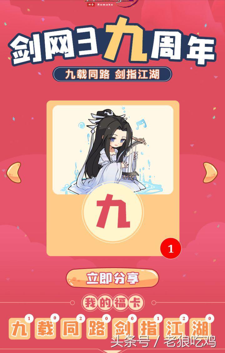 在剑网三微信公众号上,最近也推出了一个新活动,集福卡领挂件。玩家可以通过在公众号中,每日的答题,遗失的美好和九周年集福卡栏目,获得福卡。不过每天只有3次获取福卡的机会,但是玩家也可以通过赠送的方式,来帮助亲友们早日集齐福卡,获得九周年挂件。