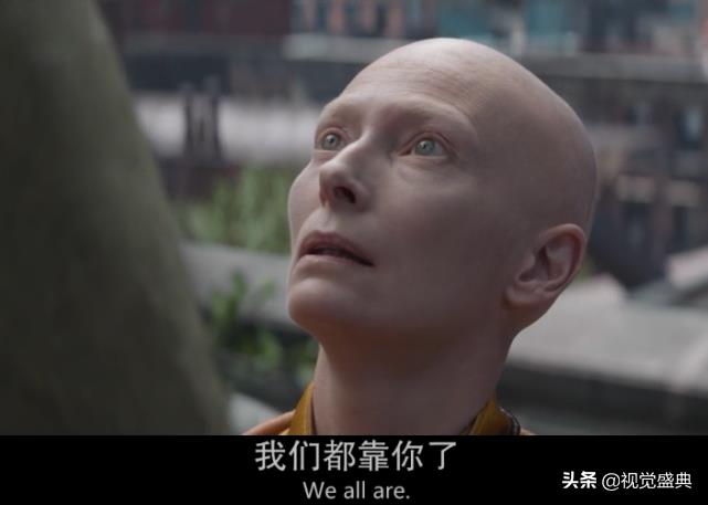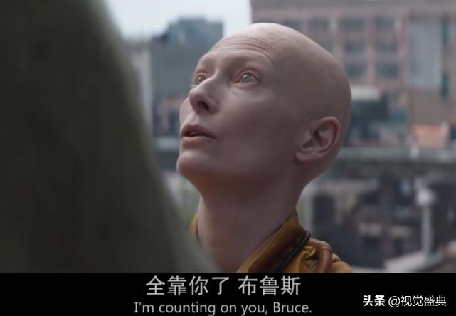 在《复联4》班纳穿越到过去寻找时间宝石的时候,碰巧遇到了古一法师,在成功从古一法师那借到时间宝石后,古一法师语重心长地跟浩克说了这么一句话:“布鲁斯,我们所有人都全靠你了”。
