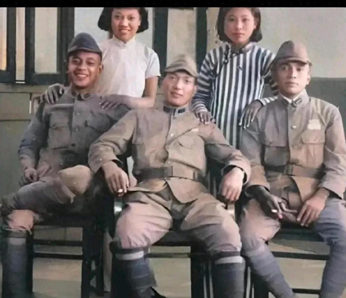 两名女汉奸把手搭在日军肩上