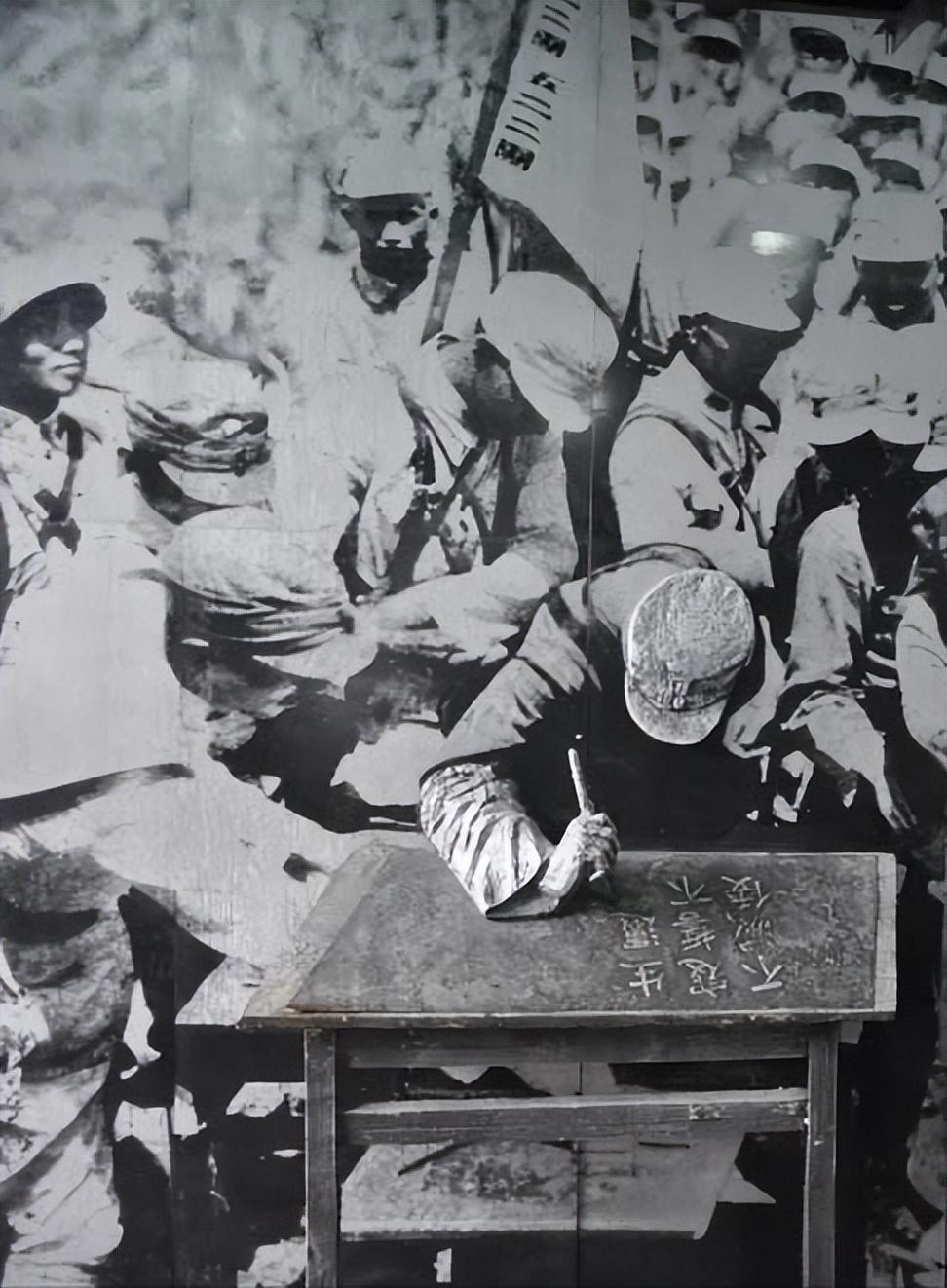 战士纷纷在桌子上写下誓词。