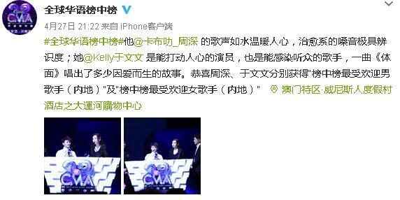 榜中榜内地最受欢迎男(女)歌手将——周深,于文文
