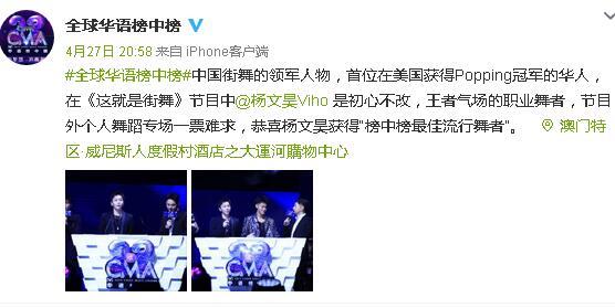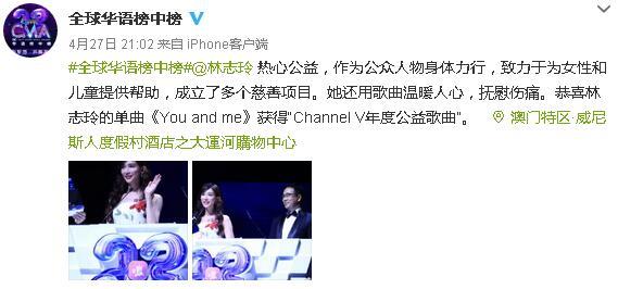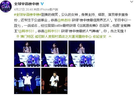 榜中榜最佳跨界艺人——林志玲;榜中榜最燃人气舞者——韩宇