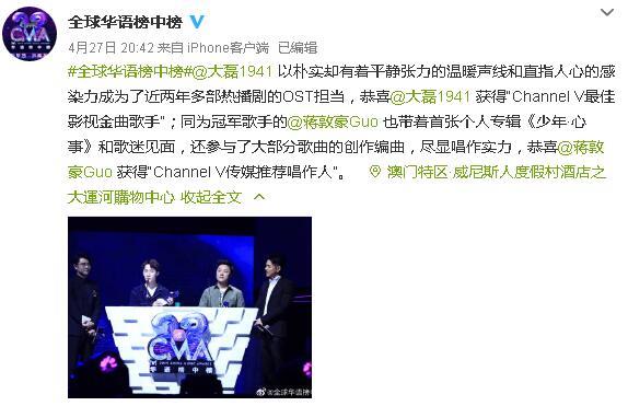 亚洲影响力最佳男歌手、榜中榜全能艺人——黄子韬