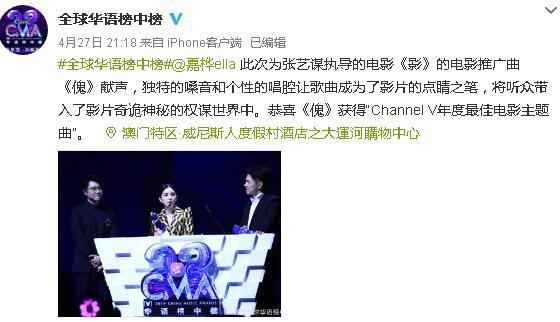 年度最佳电影主题曲奖——陈嘉桦《傀》