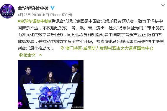 榜中榜原创音乐最佳推动奖——腾讯音乐娱乐集团