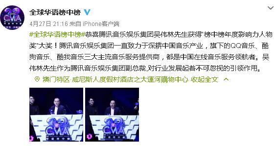 榜中榜年度影响力人物奖——吴伟林(腾讯音乐娱乐集团)