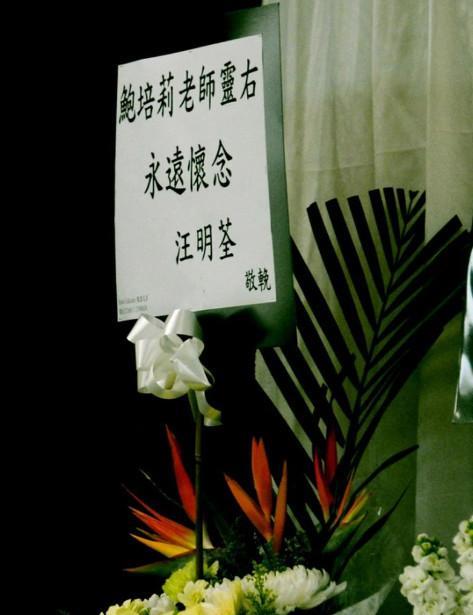 消息指,鲍培莉的灵堂布置以简约为主,灵堂中央放有她的遗照,而她的3名子女和孙女、女婿送上的心形花圈则放在前排位置,而其他艺人及亲友送上的花圈则一列排开。