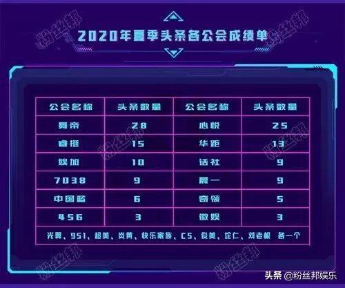 而这次夏季头条比赛中,各大公会在本届头条中获得头条的数量也已经统计出来。其中,舞帝和心悦在本次头条中也是用头条的数量证明了大型公会的实力。