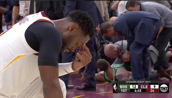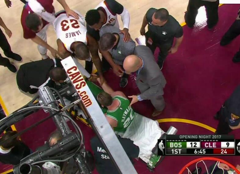 今天凯尔特人对阵骑士,开场仅仅5分多钟海沃德一次进攻中重重摔倒在地,表情异常痛苦,美国前方记者报道称海沃德大腿骨折。之后被队医用担架抬出场外。