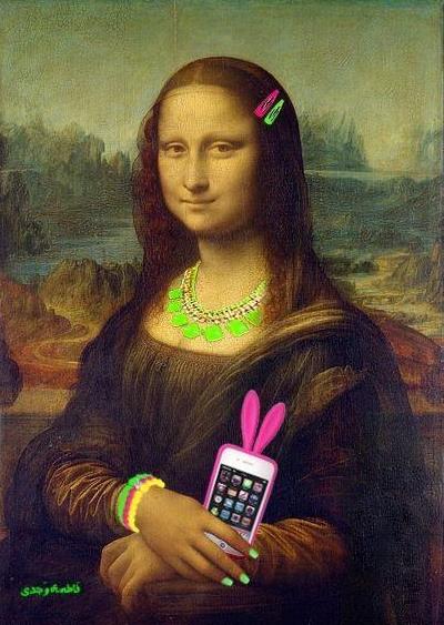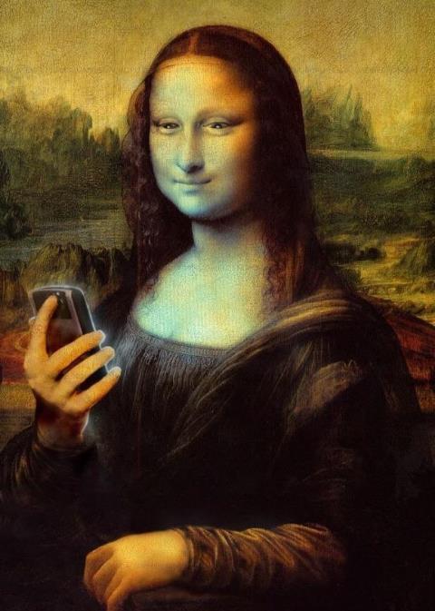 这张蒙娜丽莎手拿手机,还带着亮光,可以说非常现代了,你有没有从这张画里看到了一直在玩手机的自己?