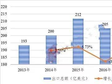 2013-2017年,我国医疗器械出口总额由193亿美元增长至217亿美元,复合增长率为2.93%。与进口总额相比,出口总额的年均增长率相对较慢。