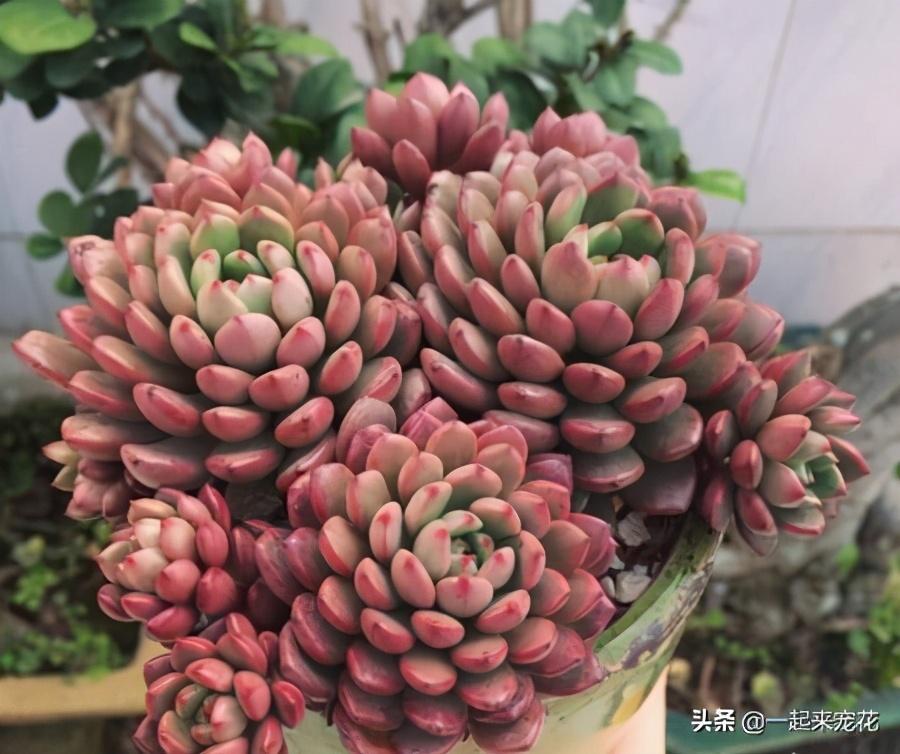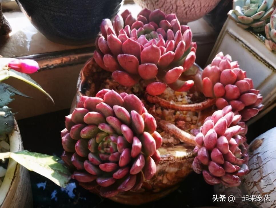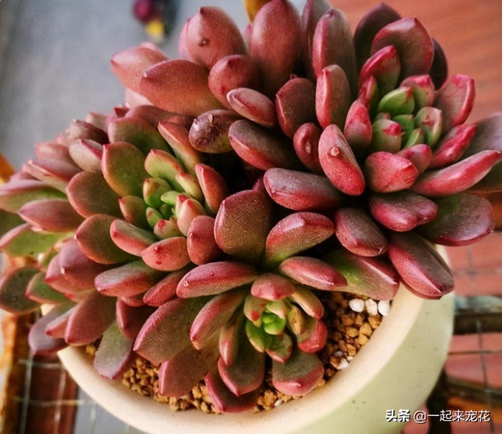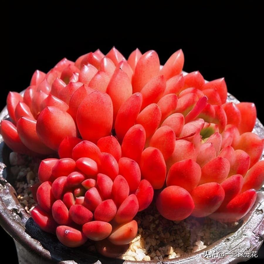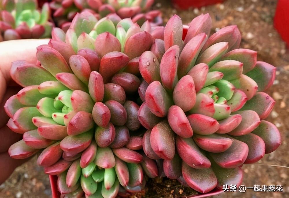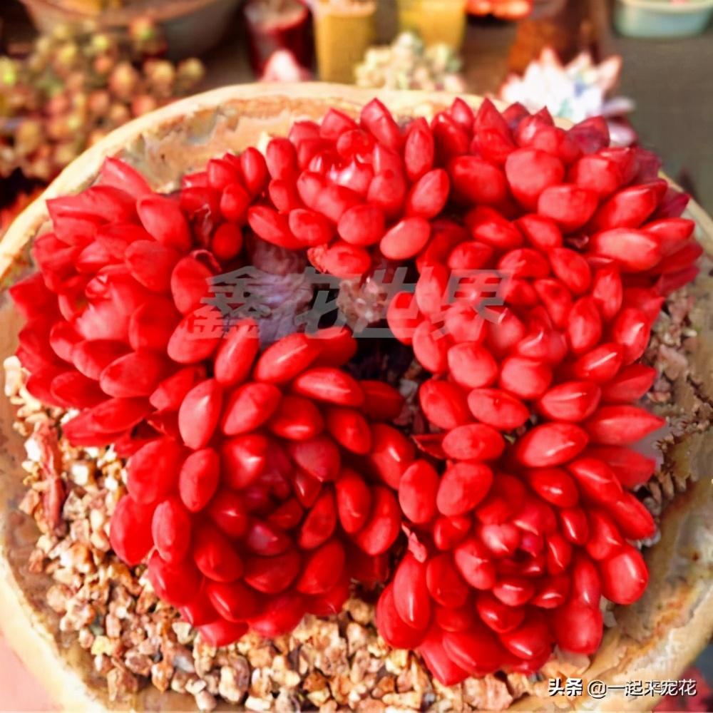 今天就给大家分享这种好养又好看的多肉植物,适合新手,颜色红彤彤的,容易长成群生肉墩子,大家养过没?