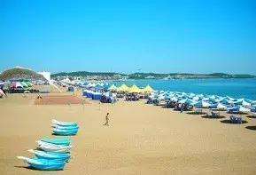 “黄金海岸”位于秦皇岛市昌黎县境内,东距北戴河海滨17 公里,西南到滦河入海口,在长达52.1 公里的海岸边,沙质松软,色黄如金,故称“黄金海岸”。此地总面积376 万平方米,可设近百个浴场。由于这里沙细、滩缓、水清、潮平,无论从何处下水游泳,断无被礁石划伤或被海水吞没的危险,即使入海远达50 多米,水深也不过腰部,是最佳的天然浴场。