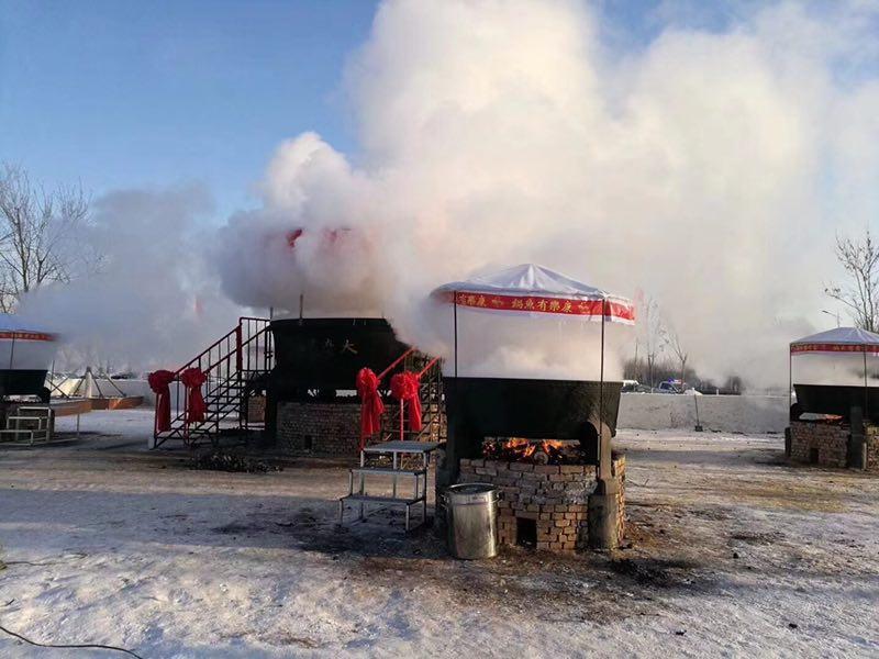 在康平卧龙湖康桥广场上举行的“第六届康平卧龙湖大辽文化冬捕节”开幕式,为我们再现了大辽皇家捺钵祭祀仪式、“破冰寻鱼”古法捕鱼等传统冬捕内容,现场的所有游客也共同品尝了在“大辽第一锅”里新鲜出锅的五福鱼汤。