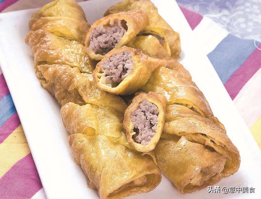 将鸡蛋饼摊开,将肉馅整齐的在饼的一端码一排,然后卷起来。不要卷太厚,然后在最后一卷抹上水淀粉,这样就不会开了,然后用刀将卷切成3厘米左右的一截截,每一截两端都要抹水淀粉,然后也是在油里炸。是很酥脆鲜美的。