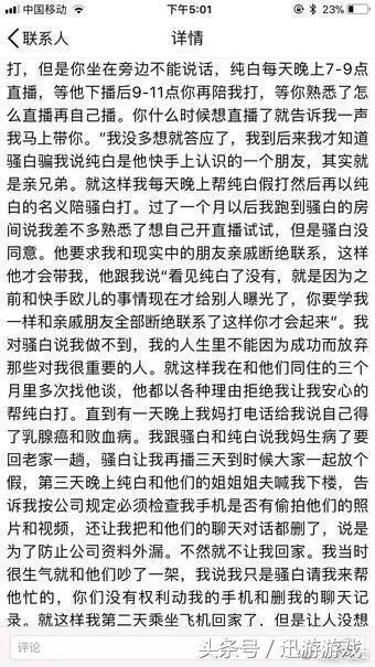 只能说游戏中演员多是多,主播的演技也不遑多让。最令人震惊的操作居然是因为双方没有达成一致意见,打手关于主播的聊天记录被骚白一家恶意删除,原本说好一月一万的工资也只支付了2000,这样的行为不仅遭人众人唾弃,而且亏待“打手”这事,连凉透的阿怡大小姐都做不出来啊。