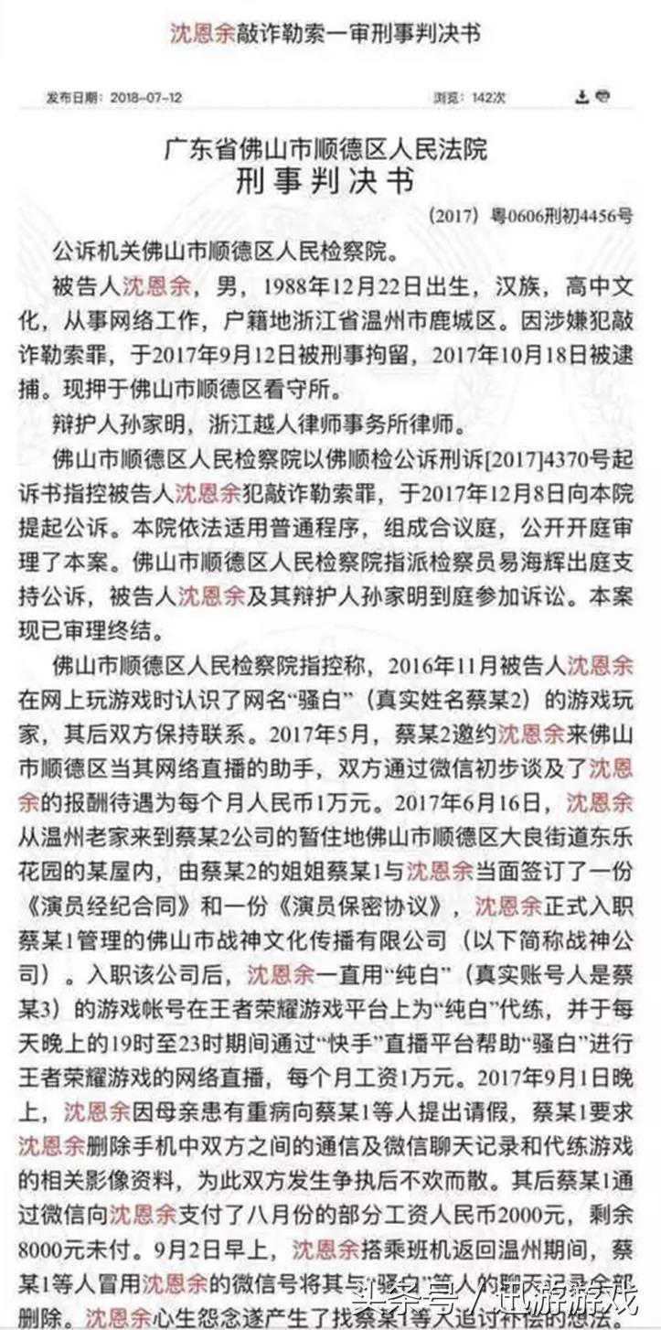 最后骚白还以敲诈勒索罪将自己雇过的打手告上了法庭,法院判决书上面明确说明骚白请了代打,后来拖欠代打工资,最后套路代打电话录音变成敲诈勒索,导致代打被关了五个月才出来。原本你情我愿好聚好散的事情变得如此不欢而散,闹到全网皆知,如今人设崩塌。