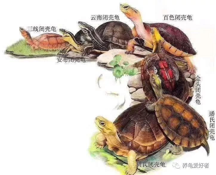 我们国家的六大闭壳龟是最有名的了。能闭壳的龟不少,但是真的被定义为闭壳龟的就不多了。我们所认识的箱龟也是闭壳的,还有红面和白唇长大也是可以闭壳。还有常说的黄缘和黄额也是可以闭壳的。但实际上黄缘和黄额在分类上属于盒龟,我们平常叫习惯了黄缘闭壳龟,实际是黄缘盒龟。不过对于我们来说,可以理解就好。