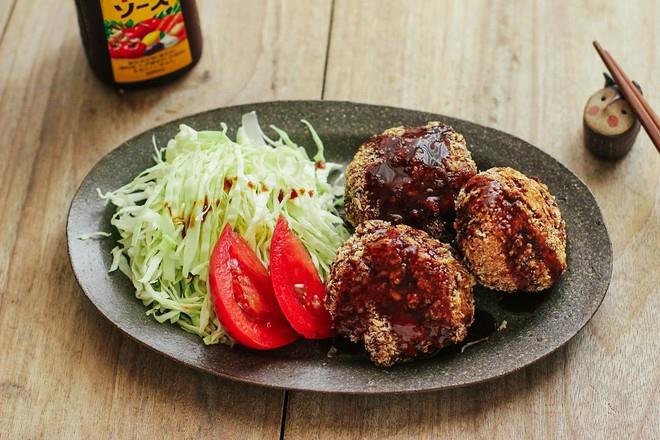 4肉馅分成小份按扁后先沾上一层面粉再挂一层鸡蛋液最后沾上面包糠放入油锅内炸到两面金黄即可。