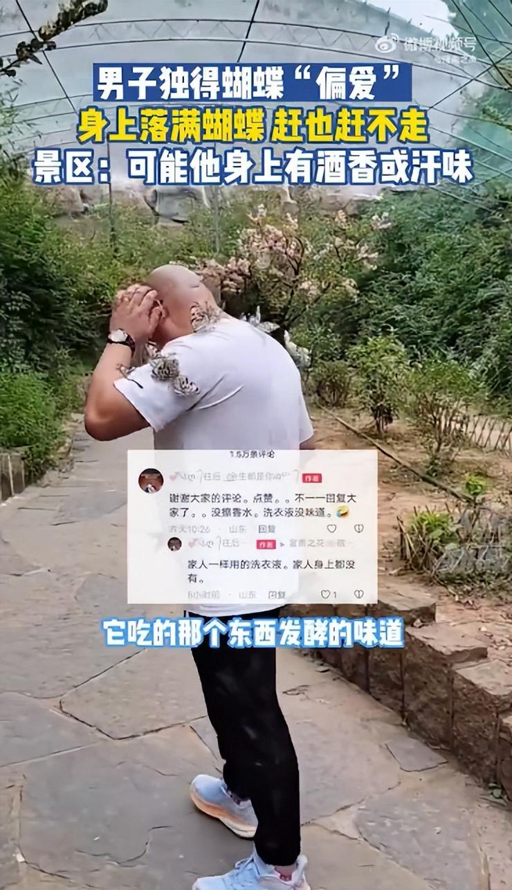 男版含香!山东一景区男子独得蝴蝶偏爱,身上落满蝴蝶赶也赶不走,景区工作人
