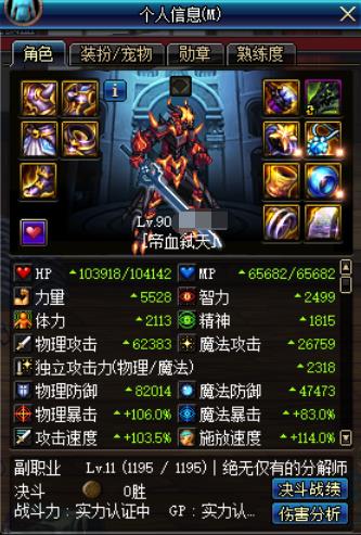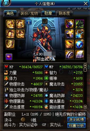 这个是进修练场,触发三神器属性,开暴走后的面板属性,主要看力量,物攻和独立: