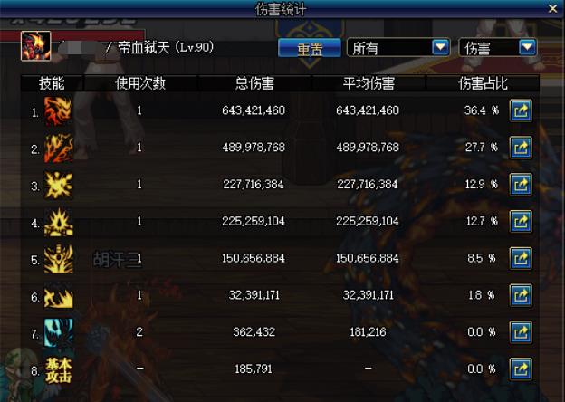 那么在这样的装备属性状态下测试几个技能的伤害