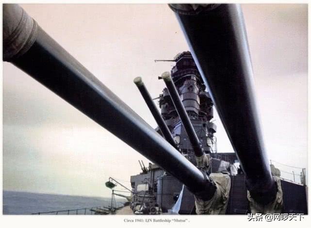 陆奥号战列舰(长门级战列舰),装备410毫米口径主炮4座(8门)、140毫米口径火炮20门、127毫米口径火炮8门以及25毫米口径火炮98门等。