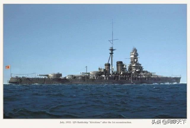 雾岛号战列舰(金刚级战列巡洋舰),舰长222.0米、舰宽31.0米、满载排水量36600吨。装备356毫米45L舰炮8门、16座152毫米50L副炮、8座127毫米高角炮、45座25毫米高射机关炮。