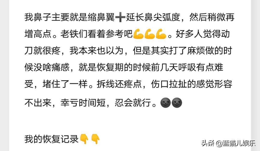 言语当中似乎在给那些想要做隆鼻的粉丝们打气加油,并提供一些自己的经验,这倒无可厚非。