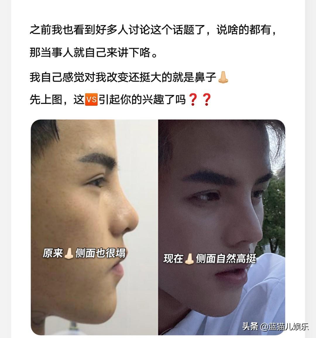 在他隆鼻之后,整个人确实变得十分俊朗,比之前帅气多了,连粉丝在评论中都表示:动了鼻子之后帅气多了!
