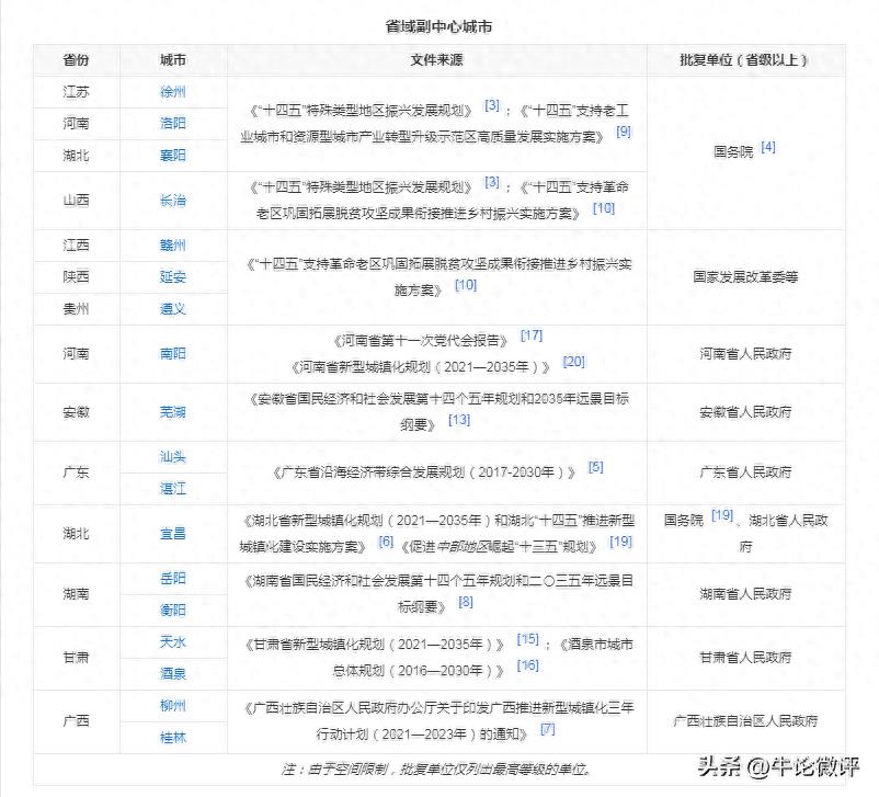好了,以上便是目前国家层面定性的省域副中心城市,当然各省也自主规划了一些省域副中心城市,如四川省,更是一下子规划了3个省域副中心,川东、川南、川北各一个,广东省也是把汕头、湛江列为省域副中心城市,河南也把南阳列为省域副中心城市。