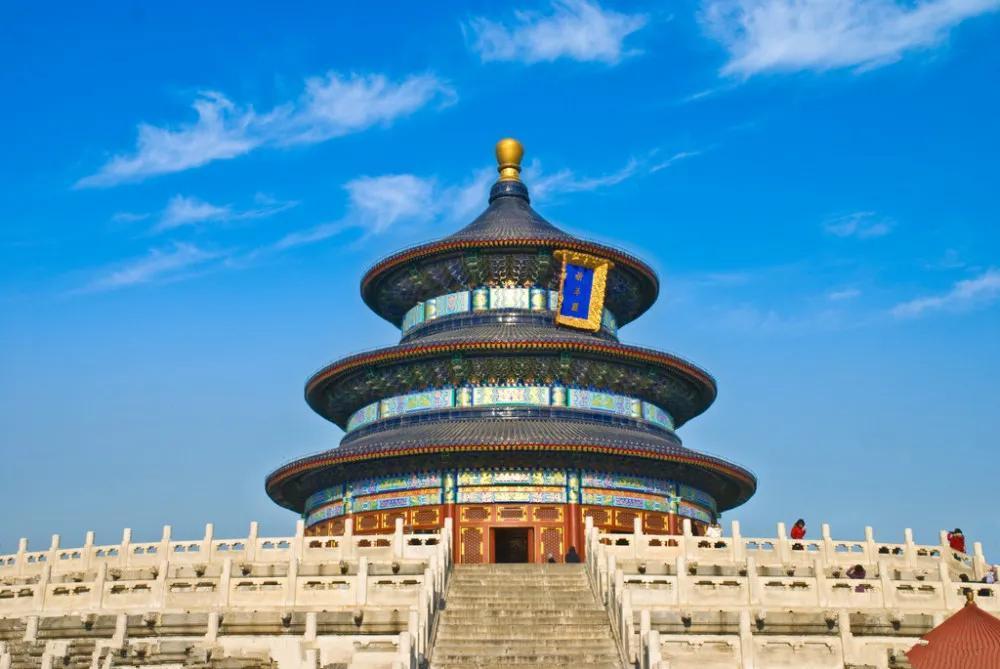 北京天坛,1998.11 文化遗产。天坛位于北京的南端,是明清两代皇帝每年祭天和祈祷五谷丰收的地方。它的严谨的建筑布局,奇特的建筑结构,瑰丽的建筑装饰,被认为是我国现存的一组最精致,最美丽的古建筑群,在世界上享有极大的声誉。天坛建于明永乐十八年(1420年),与故宫同时修建,面积约270万平方米,分为内坛和外坛两部分,主要建筑物都在内坛。南有圆丘坛,皇穹宇,北有祈年殿,皇乾殿,由一座高2米半,宽28米,长360米的甬道,把这两组建筑连接起来。天坛的总体设计,从它的建筑布局到每一个细部处理,都强调了“天”。它那300多米长的高出地面的甬道,人们登临其上,环顾四周,首先看到的是那广阔的天空和那象征天的祈年殿,一种与天接近的感觉就油然而生。这条甬道又叫海漫大道,这是因为古人认为到天坛去拜天等于上天 ,而由人间到天上去的路途非常遥远、漫长。