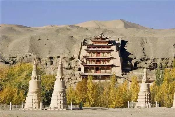 甘肃敦煌莫高窟,1987.12 文化遗产。俗称千佛洞。位于甘肃敦煌市东南25公里的鸣沙山东麓崖壁上,上下五层,南北长约1600米。始凿于366年,后经十六国至元十几个朝代的开凿,形成一座内容丰富、规模宏大的石窟群。现存洞窟492个,壁画45000平方米,彩塑2400余身,飞天4000余身,唐宋木结构建筑5座,莲花柱石和铺地花砖数千块,是一处由建筑、绘画、雕塑组成的博大精深的综合艺术殿堂,是世界上现存规模最宏大、保存最完好的佛教艺术宝库,被誉为“东方艺术明珠”。本世纪初又发现了藏经洞(莫高窟第17洞),洞内藏有从4—10世纪的写经、文书和文物五、六万件。引起国内外学者极大的注意, 形成了著名的敦煌学。敦煌莫高窟莫高窟(Dunhuang Caves)俗称千佛洞,被誉为20世纪最有价值的文化发现、“东方卢浮宫”,坐落在河西走廊西端的敦煌,以精美的壁画和塑像闻名于世。它始建于十六国的前秦时期,历经十六国、北朝、隋、唐、五代、西夏、元等历代的兴建,形成巨大的规模,现有洞窟735个,壁画4.5万平方米、泥质彩塑2415尊,是世界上现存规模最大、内容最丰富的佛教艺术圣地。近代发现的藏经洞,内有5万多件古代文物,由此衍生专门研究藏经洞典籍和敦煌艺术的学科——敦煌学。1961年,被公布为第一批全国重点文物保护单位之一。1987年,被列为世界文化遗产。