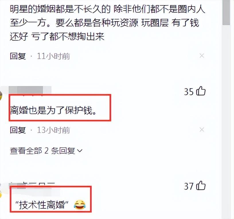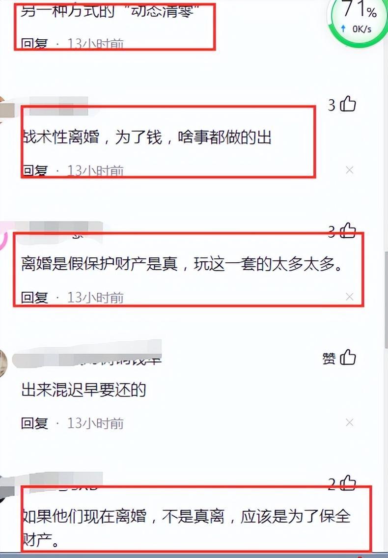 是真的离婚还是假的离婚,这一点,网友看着都在评论,这应该是历史上最具有技术性离婚的夫妇了,真的是一个比一个精明,看看评论热闹非凡啊!