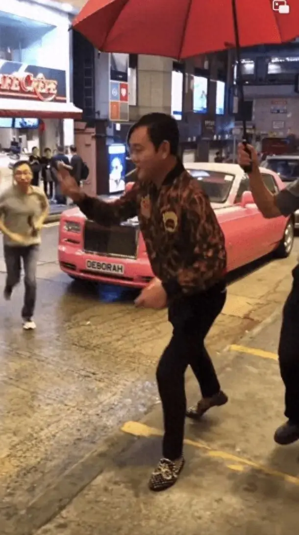 64岁富豪洪永时现身香港,嘴叼烟打扮土豪,乘豪车出巡四处给小费
