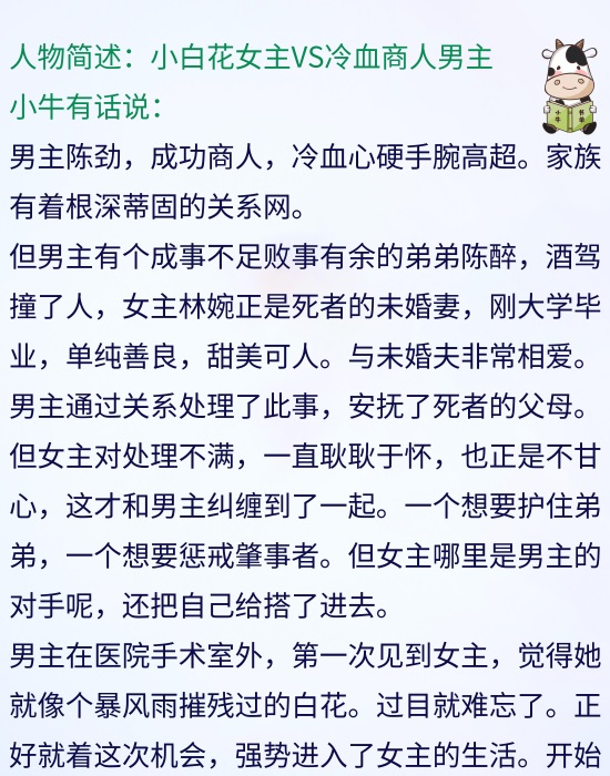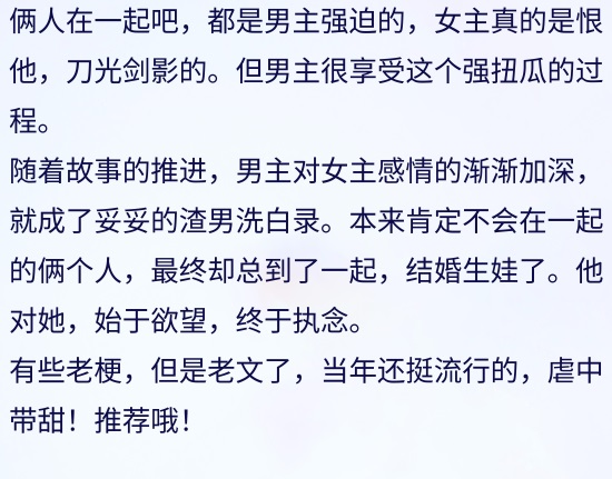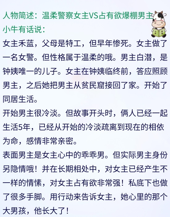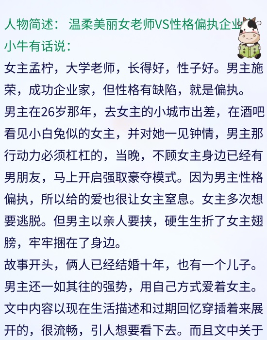 大家好,小牛又来推书啦!好几期没推荐我非常喜欢的强取豪夺文啦!本期为宝贝们准备了5本现言,男主强取豪夺文,娇柔女主和霸总范男主的搭配,一直是我的最爱,希望也能讨得你们的喜欢啦!文笔有保障哦,亲自验收过!如果喜欢我的推文,请帮忙“四连”好吗?关注、点赞、收藏加转发!谢谢大家啦!