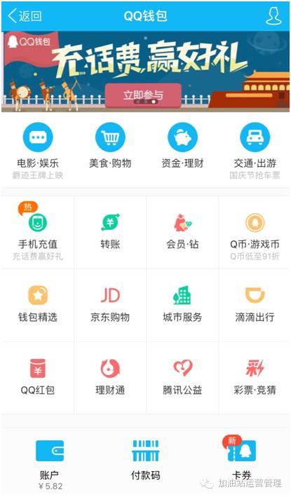 国庆假期马上来临,又到了“全民自驾黄金周”。很多自驾游的车主都会准备好加油卡,自助加油来避免在加油站排大队。但很多人会有疑问:加油卡怎么充值最方便?对比之后的结论是:腾讯QQ钱包竟然是最方便的途径,全国范围内中石油、中石化加油卡均可充值,而且十一期间还有返现优惠可享,甚至有可能1块钱跑200公里。