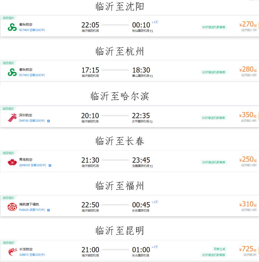 此外,临沂至西安、重庆、大连、厦门等一些旅游热线的机票也均有折扣优惠。