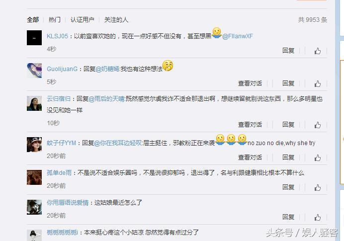 又会有人说了,既然是公众人物就该注意自己的言行,可是公众人物首先是人吧!而且首先这不一定是她的账号,且就把这个账号当成是郑爽的私人小号,她也是用一个私人的小号像一个普通人一样发表自己的言论又有什么问题?