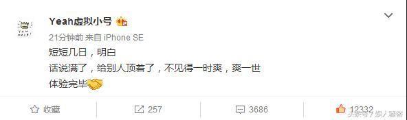 郑爽这姑娘,最近应该是很不太平,这一切都要跟这个“Yeah虚拟小号”有关,虽然至今并不知道,这位彻底放飞自我的主是不是郑爽本人,但是无疑,这个小号让郑爽陷入了很尴尬的境地!