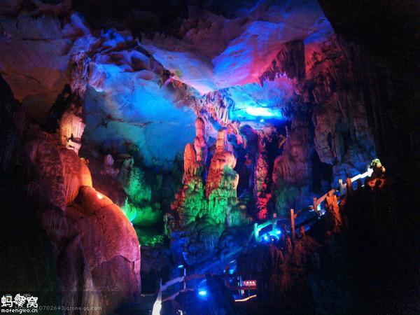 都乐岩风光到20世纪90年代末为止,都乐岩共发现大小46个山洞。1974年柳州市人民政府组织有关专家重点开发了盘龙山上的三个洞,即盘龙洞、通天洞、水云洞,配以五彩缤纷的灯光,使洞内景观呈现出瑰丽神奇的光彩,洞景堪与桂林芦笛岩、南宁伊岭岩相媲美,且有自己的特色,被誉为“大自然奇幻艺术之宫”具有极高的观赏价值。同年,这三洞对游人开放,合称“都乐岩”。都乐岩的洞内游程共768米,总面积6400平方米,洞与洞之间有盘山游道相连,著名的景致有“柳江放排”、“火炬迎宾”、“南海风光”、“山村晨曦”、“三姐对歌”、“鱼跃天窗”、“百兽闹林”、“都乐飞瀑”、“丝绸商店”等。其中盘龙洞游程300多米,有22个景点,著名景点有“火炬迎宾”、“南海风光”、“三姐传歌”等。通天洞游程100多米,有14个景,堪称稀世少有的大自然杰作“山村晨曦”即在此洞,这一洞景曾被制成立体图景在1983年北京中国国际展览会上展出,使许多宾客流连驻足,赞赏不已;水云洞狭长幽深,游程300多米,有17个景,其中“犀牛戏水”一景是三个洞中面积最大一处,宽20米,长200米。