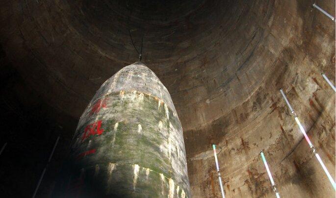 另外,还有17座宽大高阔的导弹形洞体,导弹形洞体高达80米,直径20米左右,直冲山顶。