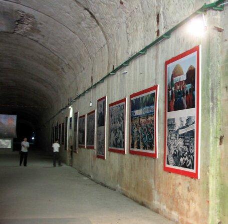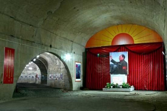 进入“6501”洞穴,可以看到,墙体上印着“练出本领打好仗”,“抓革命促生产促工作促战备”之类的标语。