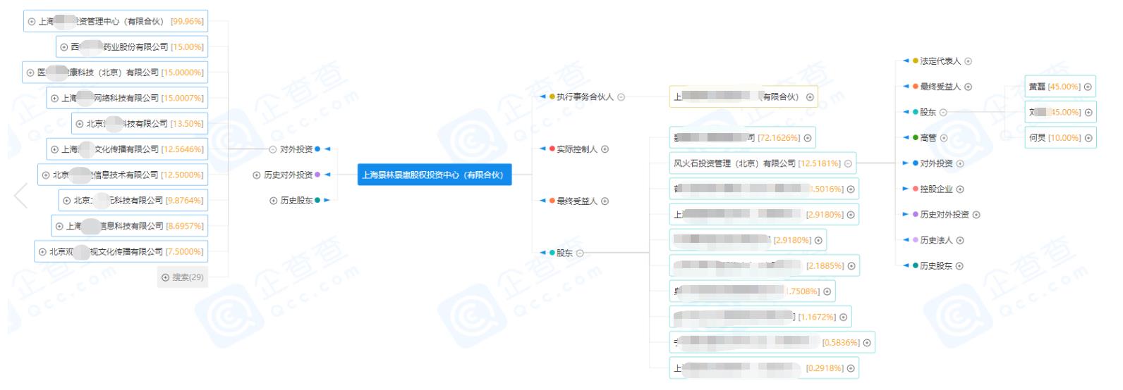 而通过这个风火石投资,两人还间接持股了29家企业,其中有做医药的、医疗器械的、综艺节目的、电视剧电影的。动漫的、在线教育的等等。